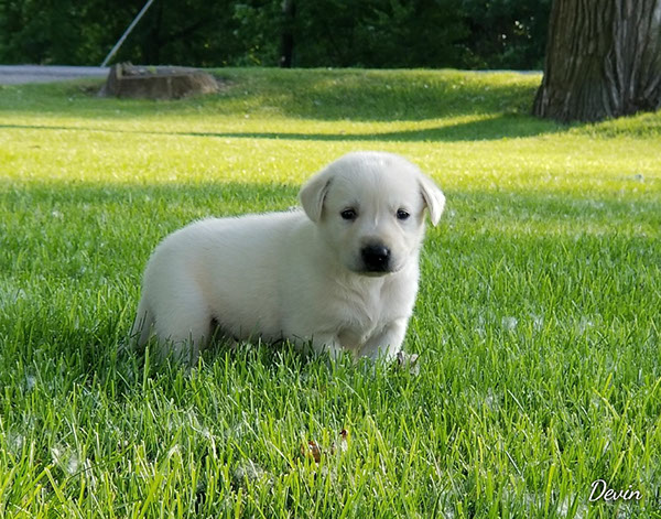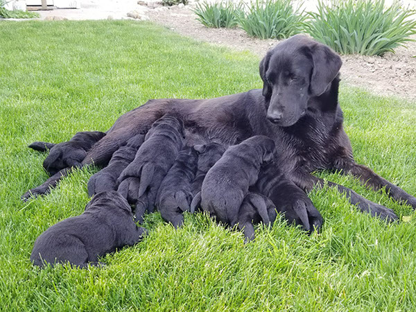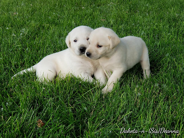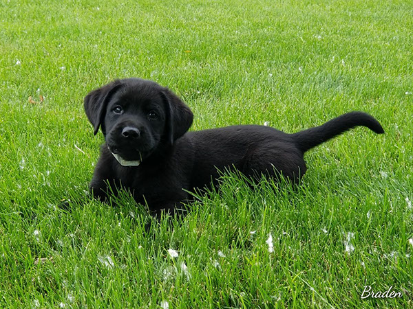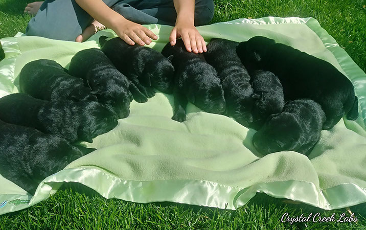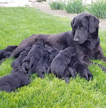Puppies will come to you at 8 weeks after being vet-examined, with registration papers, dew claws removed, up to date vaccinations and deworming, a two day supply of puppy food, and a few of our great vitamins (NuVet Vitamins) that we use on our Lab-family.