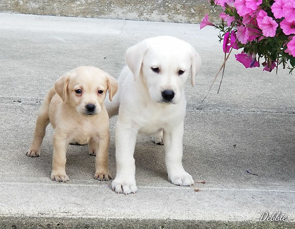 Puppies will come to you at 8 weeks after being vet-examined, with registration papers, dew claws removed, up to date vaccinations and deworming, a two day supply of puppy food, and a few of our great vitamins (NuVet Vitamins) that we use on our Lab-family.